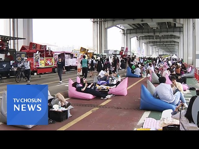 푸드 페스티벌이 잠수교 위에서 펼쳐집니다.