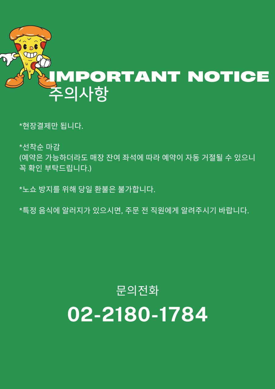 *특정 음식에 알러지가 있으시면, 주문 전 직원에게 알려주시기 바랍니다.